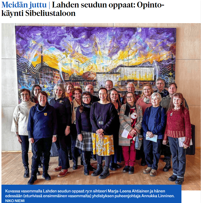 Jalas, Helli 2025: Lahden seudun oppaat: Opintokäynti Sibeliustaloon. Etelä-Suomen Sanomat 11.3.2025. (nettiversio). https://www.ess.fi/paikalliset/8351436 Viitattu 5.5.2025.